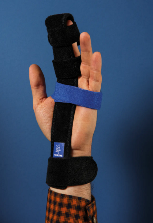 A 2., 3. vagy 4. ujjak immobilizálására szolgáló rögzítő sín. Az elérni kívánt szög (hajlítás vagy nyújtás) függvényében formálható és alakítható merevítő. A rögzítőnek 4 pántja van (2 rögzített és 2 levehető), amelyekkel az illeszkedés és szorosság állítható.