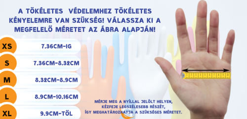 | Vastagság | Ujj min. 0,08 mm, tenyér min. 0,06 mm |