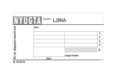 A tömb 50 garnitúrás, ahol minden garnitúra 2 lapból áll — így minden nyugta után automatikus példány készül; az egyik példány a vásárlóé, a másik az adminisztrációhoz.